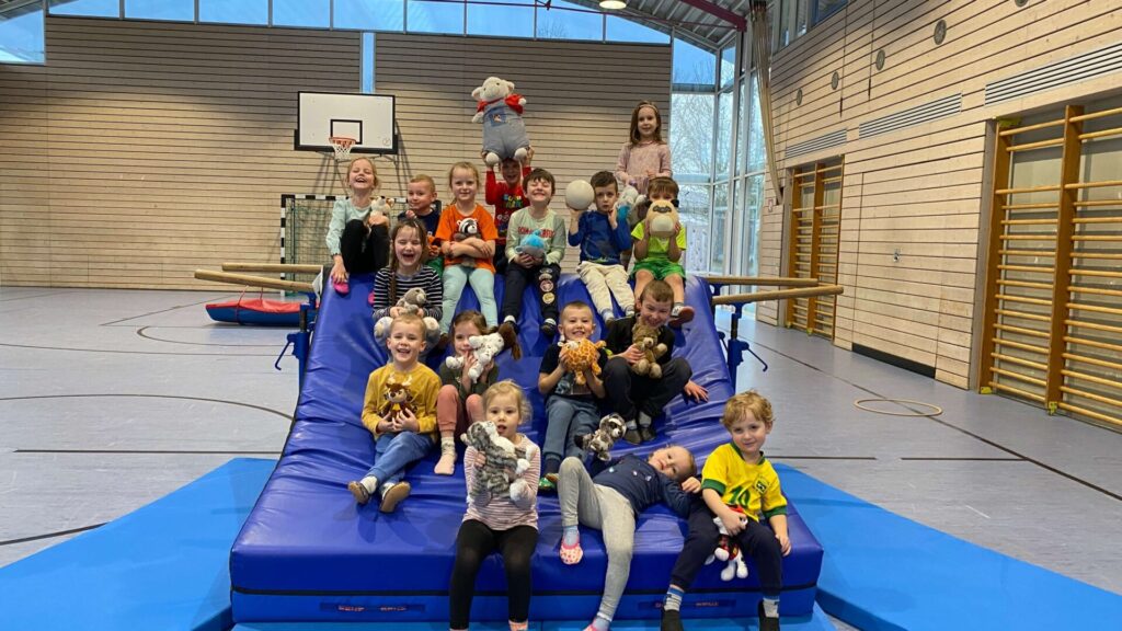 Jeder durfte sein Lieblingskuscheltier mitbringen und es war alles dabei vom Schaf, Affe, Hund, Pokémon, Katze ….. und dann wurden alle vorgestellt und mit ihnen geturnt. Die Kinder hatten sehr viel Spaß in eine andere Welt einzutauchen.